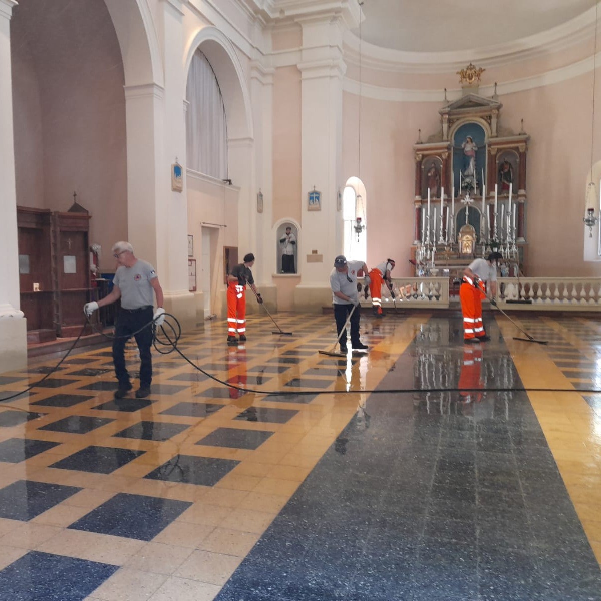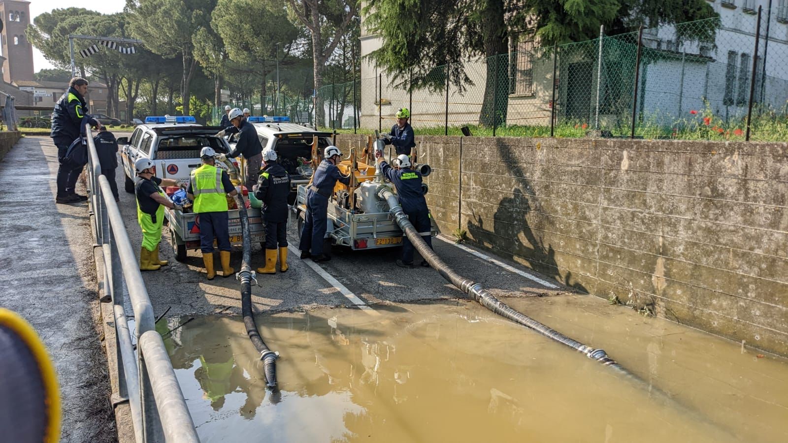 Il convoglio è composto da due macchine movimento terra, due idrovore specifiche per il pompaggio di acque fangose, una torre faro, un pick-up, un mezzo pesante per il carico del materiale inerte ed un 4x4.